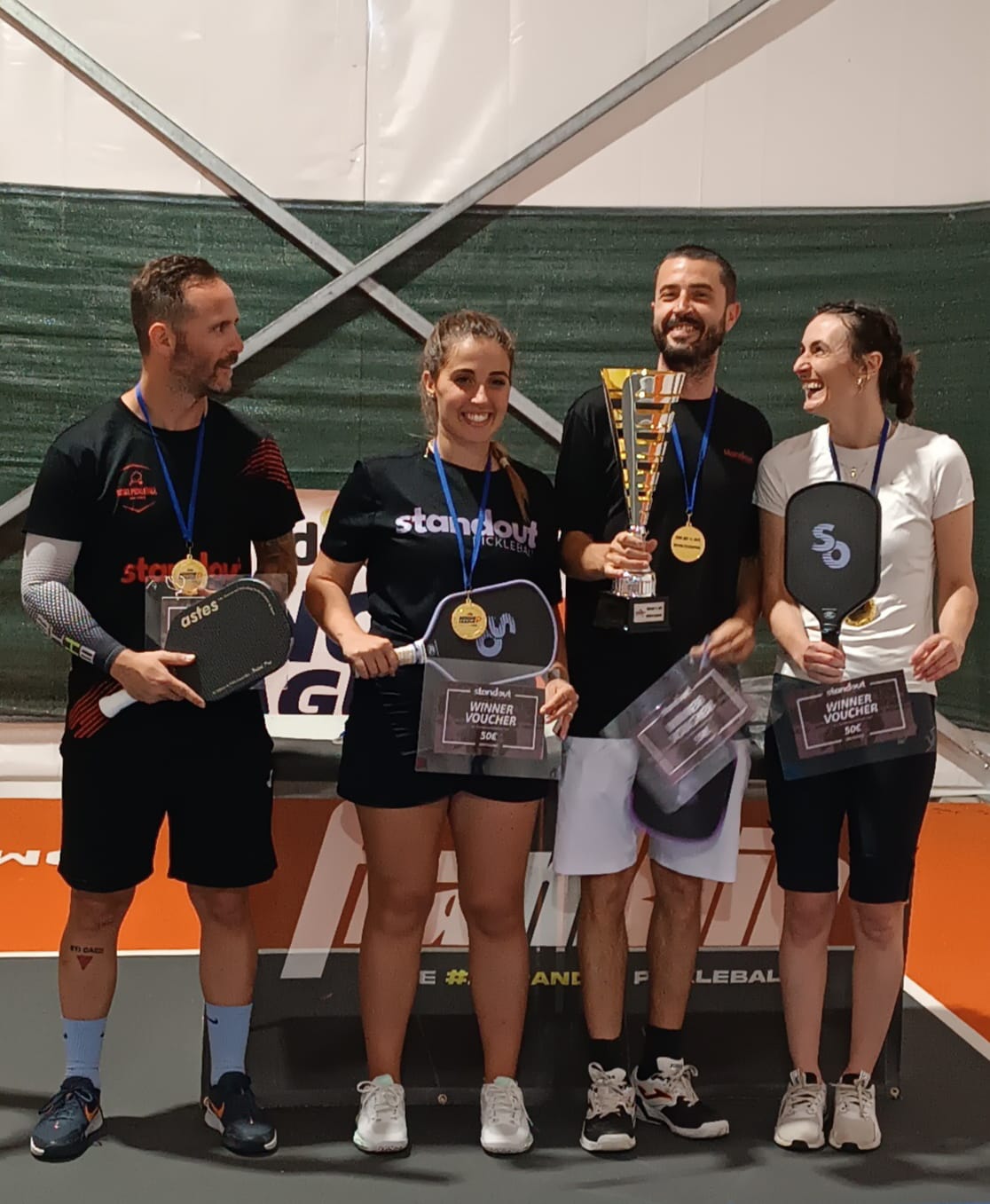 Matches are made up of four games: Women’s Doubles, Men’s Doubles, and two Mixed Doubles.